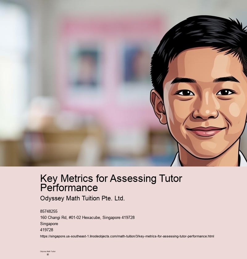 Key metrics include student improvement in grades, engagement during lessons, feedback from students and parents, and success in exams like PSLE, O-Level, and A-Level.